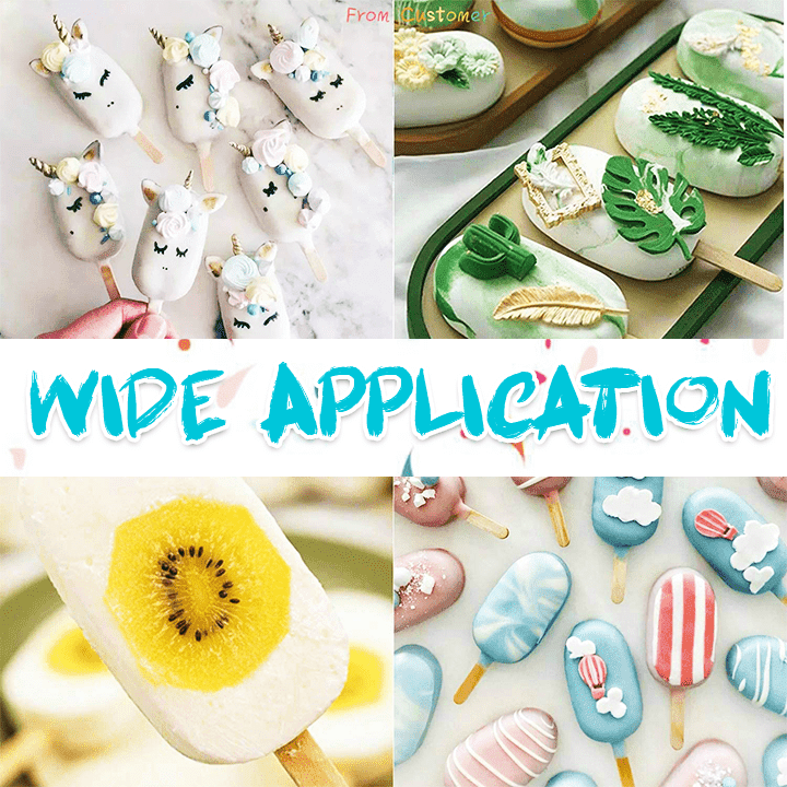 DIY delicious& picture-perfect cake pops! Cakesicle Silicone Mold creates easy-to-make & yummy treats with a chocolate shell surrounding a blend of cake and frosting. Designed with glossy non-stick surface for easy extraction, your cakesicles will pop out easily without cracking. No need to shape or roll the filling - the silicone mold and chocolate coating guarantee your cakesicles will have a perfect shape! Simply fill cake, frosting mixture, crumbs, mousse, ice cream and more! FEATURES: